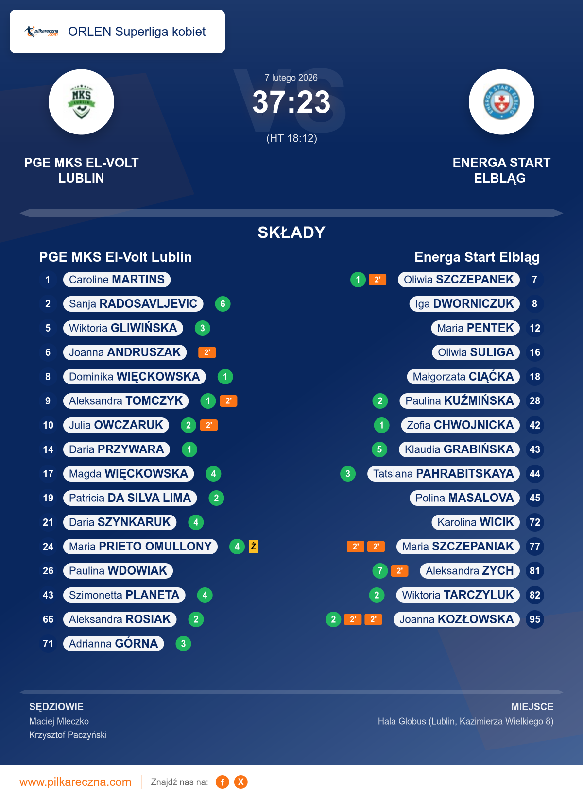 PGE MKS El-Volt Lublin 37–23 Energa Start Elbląg