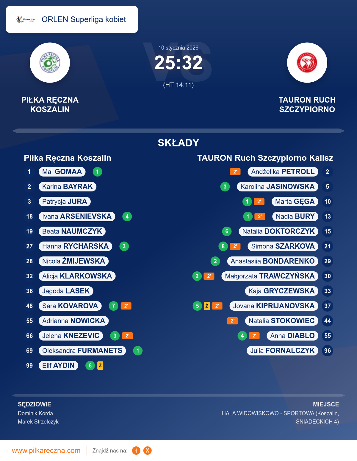 Wynik: 25–32 (HT 14–11)