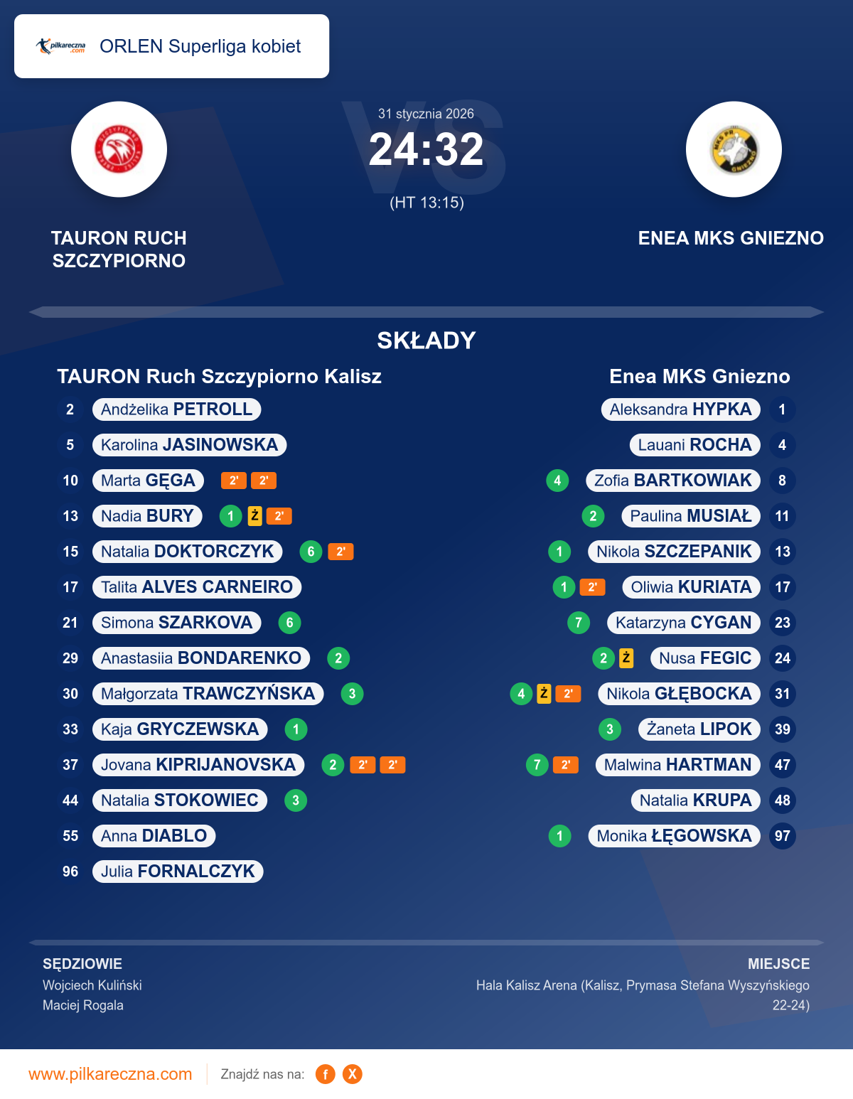 TAURON Ruch Szczypiorno Kalisz 24–32 Enea MKS Gniezno