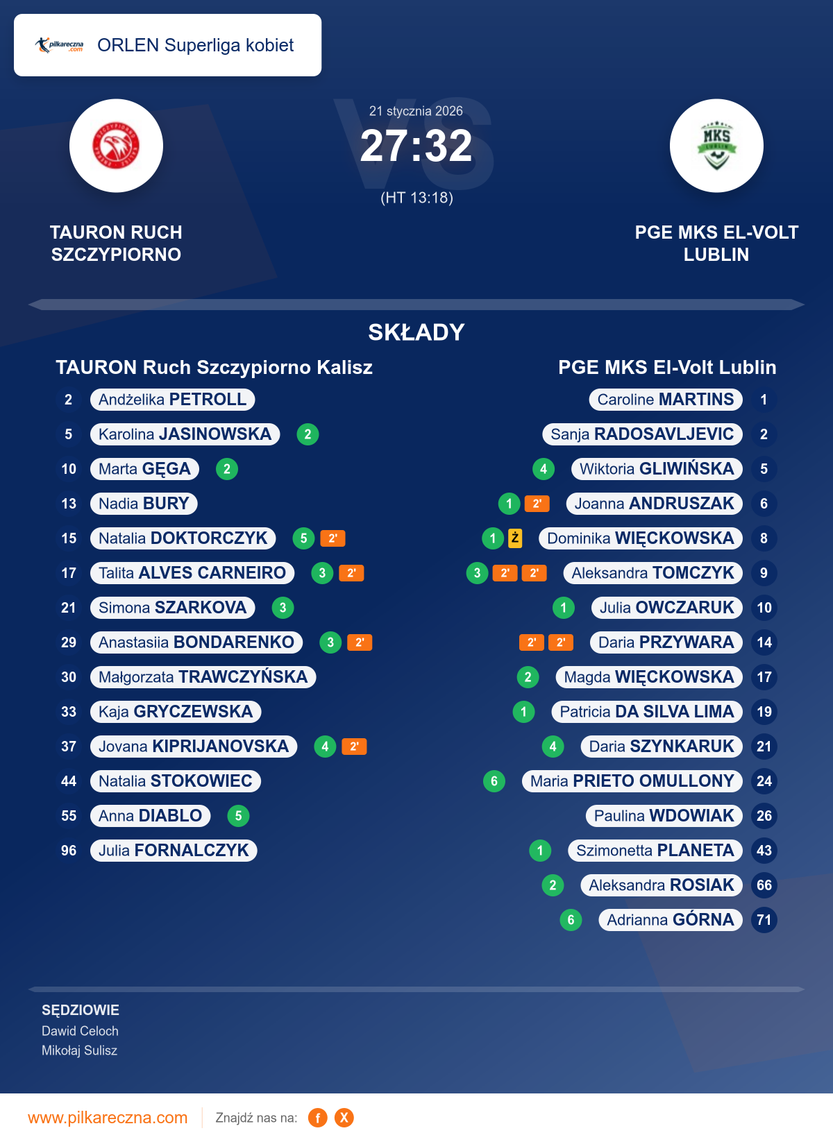 TAURON Ruch Szczypiorno Kalisz 27–32 PGE MKS El-Volt Lublin