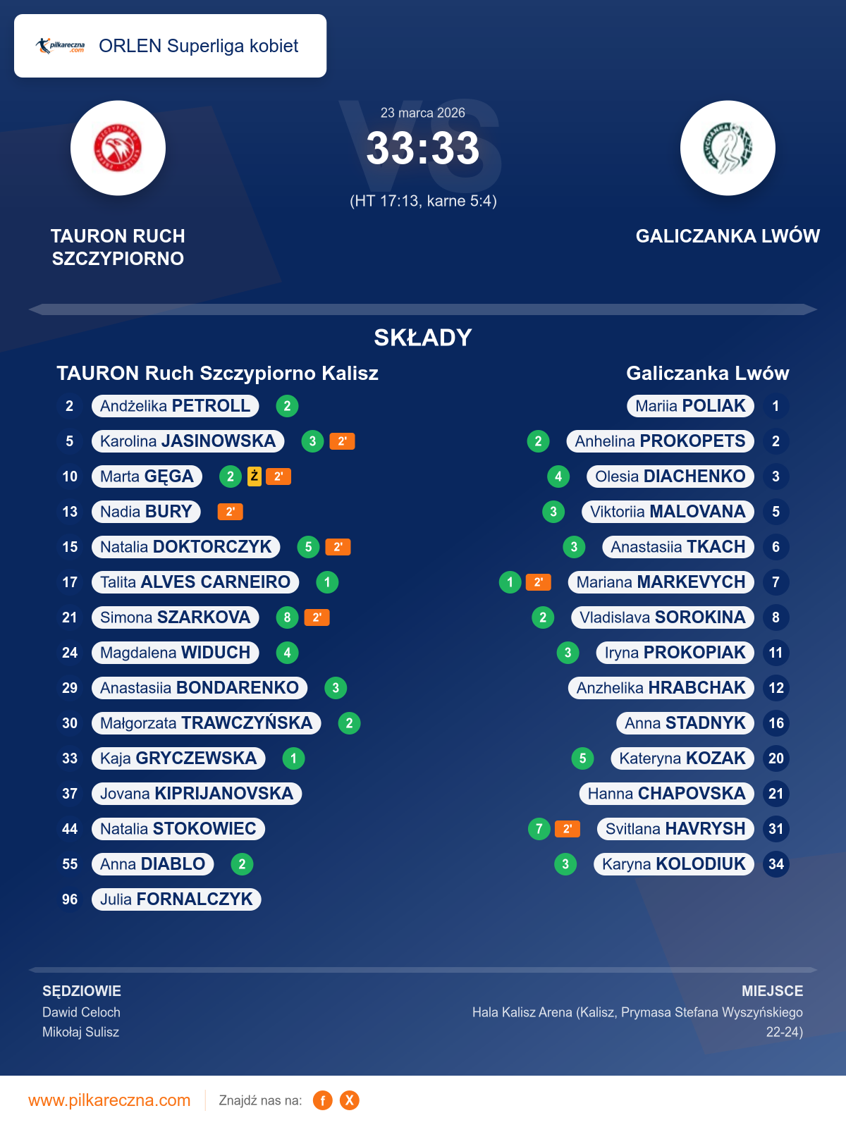 TAURON Ruch Szczypiorno Kalisz 33–33 Galiczanka Lwów