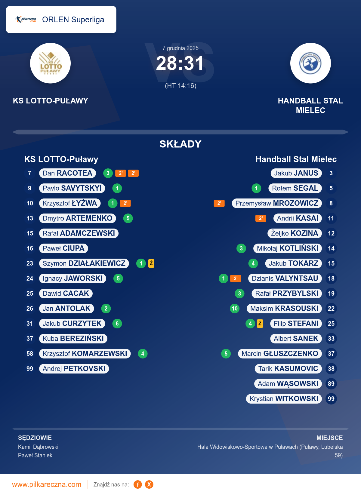 KS LOTTO-Puławy 28–31 Handball Stal Mielec
