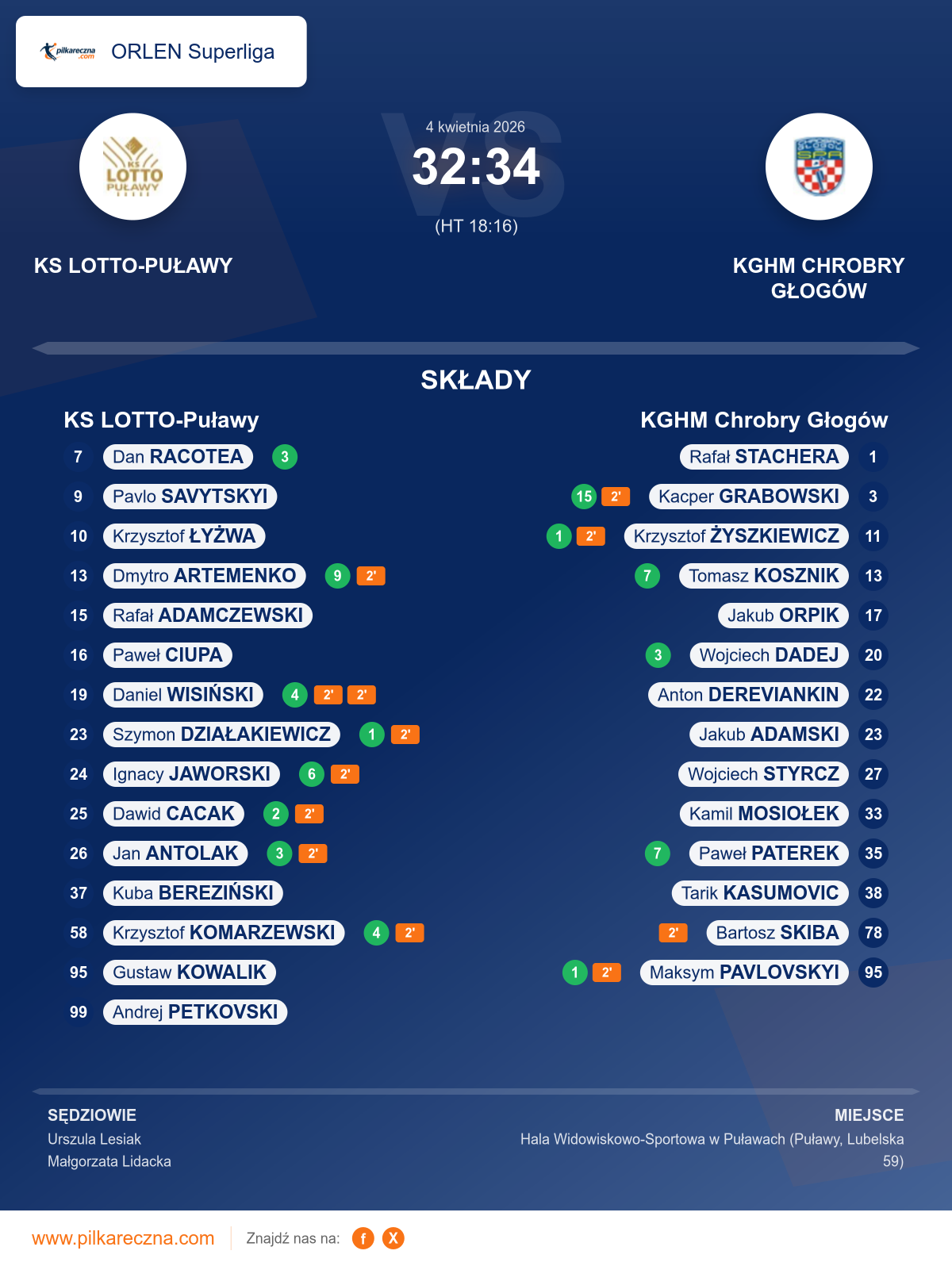 KS LOTTO-Puławy 32–34 KGHM Chrobry Głogów