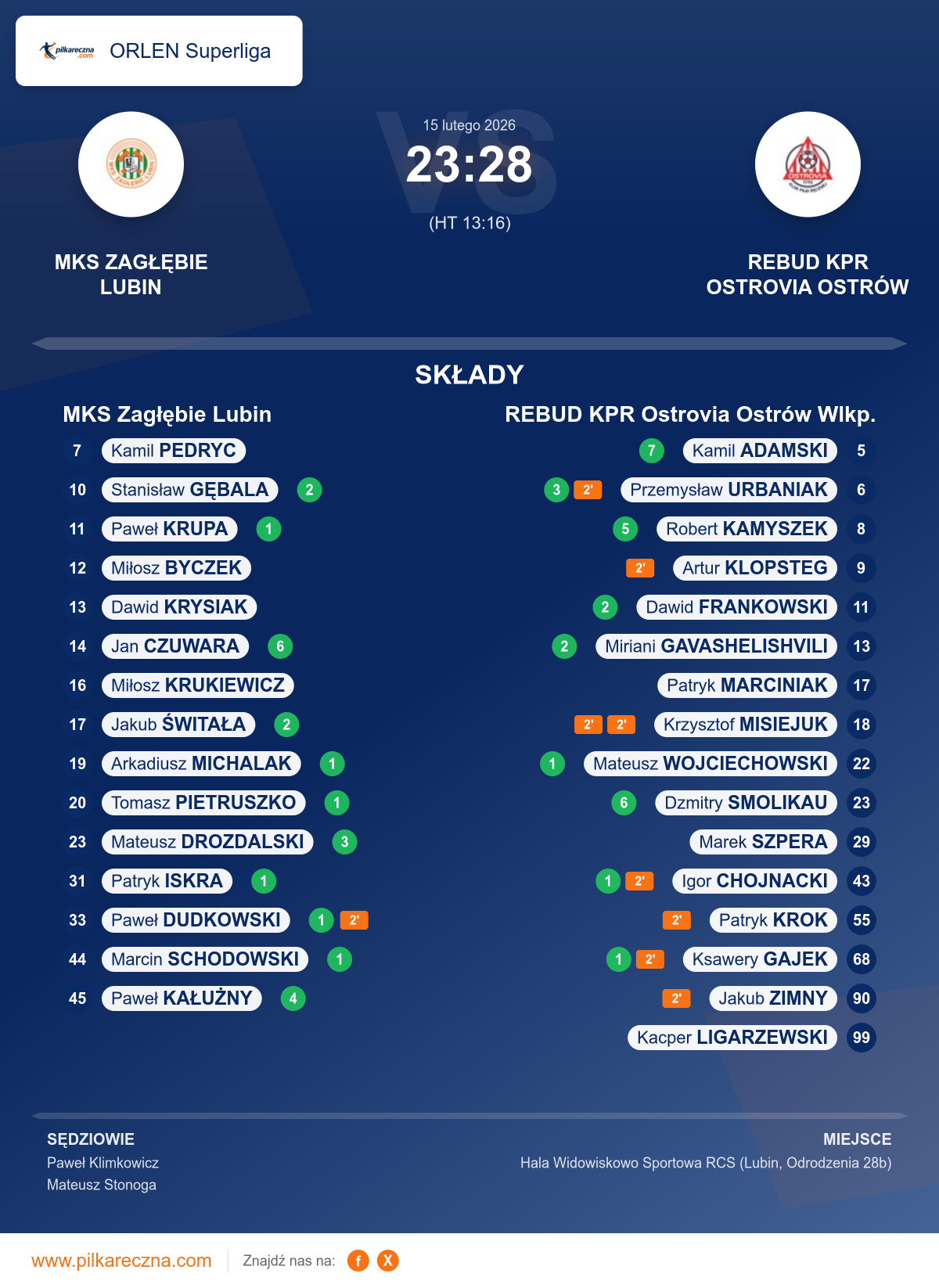 MKS Zagłębie Lubin 23–28 REBUD KPR Ostrovia Ostrów Wlkp.