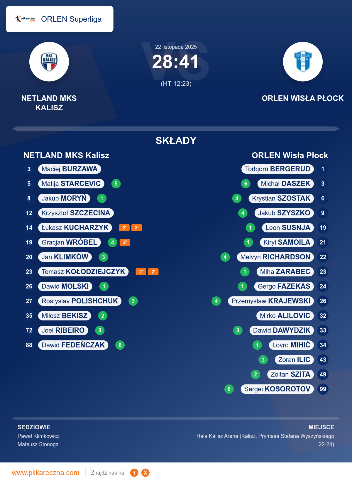 NETLAND MKS Kalisz 28–41 ORLEN Wisła Płock
