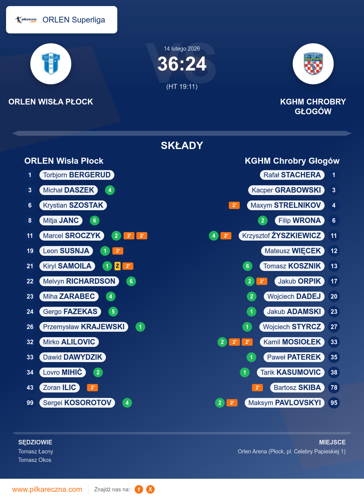 ORLEN Wisła Płock 36–24 KGHM Chrobry Głogów