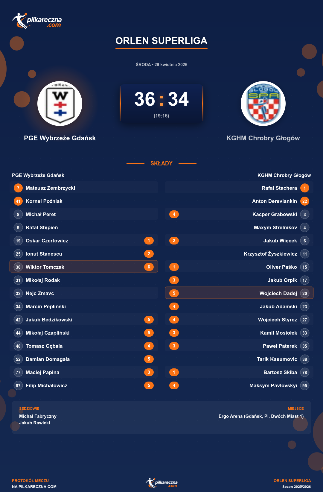 PGE Wybrzeże Gdańsk 36–34 KGHM Chrobry Głogów