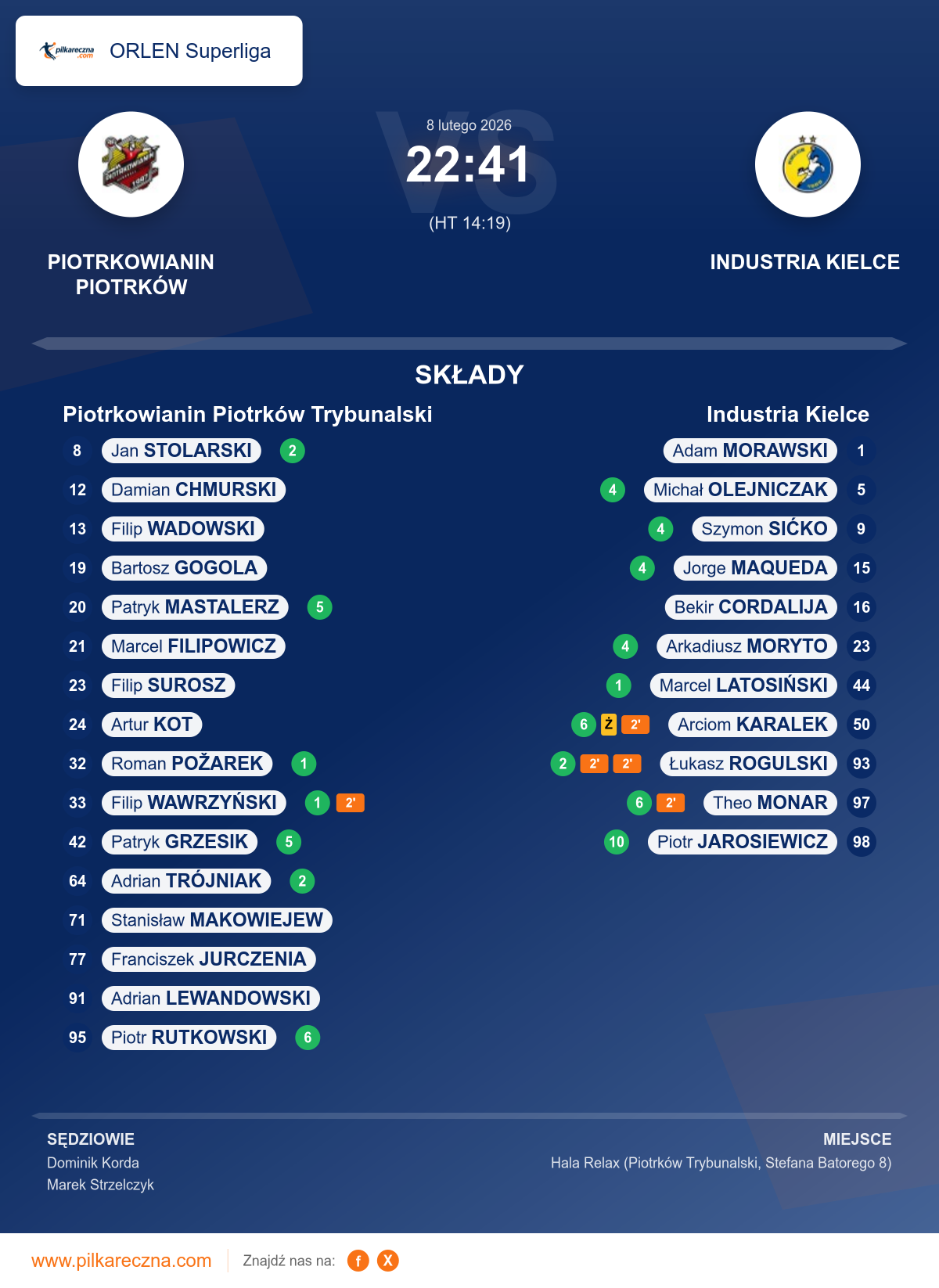 Piotrkowianin Piotrków Trybunalski 22–41 Industria Kielce