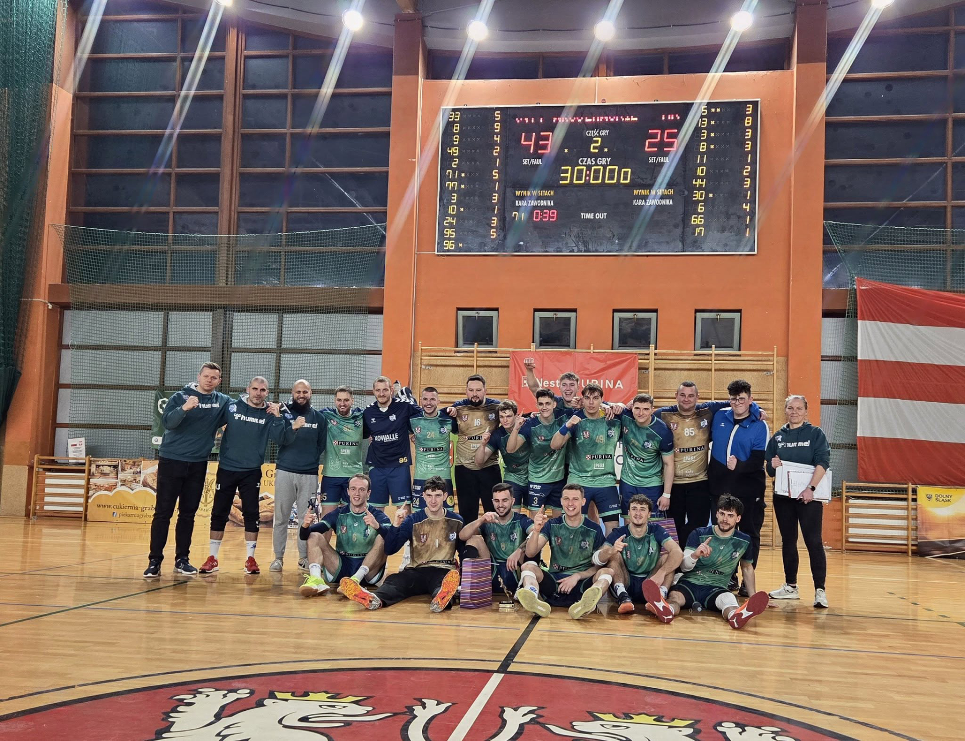 Nie mniejsze emocje – choć zupełnie innego rodzaju – towarzyszyły rywalizacji w Grodkowie. UKS Olimp Grodków pewnie rozprawił się z TS Zew Świebodzin, budując przewagę już w pierwszej połowie (16-11) i konsekwentnie ją powiększając po przerwie. Zespół z Grodkowa wygrał oba bezpośrednie spotkania w tym sezonie i przedłużył imponującą serię do pięciu zwycięstw z rzędu, umacniając się na trzeciej pozycji w tabeli z dwunastopunktową przewagą nad rywalem. TS Zew Świebodzin, który przegrał czwarty z ostatnich sześciu meczów, spadł na piąte miejsce - fatalna skuteczność rzutów karnych (1/5) po stronie gospodarzy nie miała tym razem znaczenia, bo przewaga w grze pozycyjnej była aż nadto wyraźna. Wśród strzelców wyróżnili się Bartosz Żubrowski z sześcioma trafieniami po stronie zwycięzców oraz Jędrzej Jasiński, który z siedmioma bramkami okazał się najskuteczniejszy w całym meczu, choć nie zdołał uchronić swojego zespołu od porażki.
