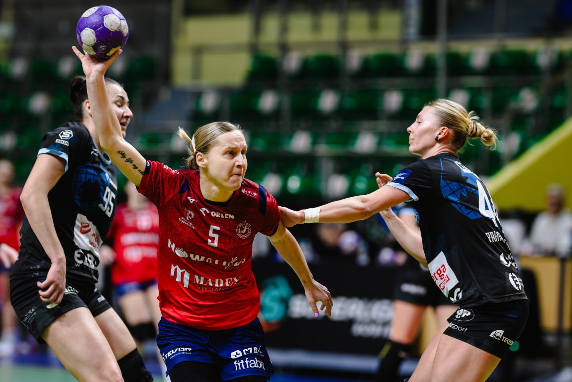Początek pojedynku w Elblągu nie wskazywał na łatwą przeprawę dla żadnej ze stron. Przez pierwsze dziesięć minut zespoły prezentowały wyrównany poziom, wymieniając się ciosami do momentu, gdy na tablicy widniał wynik 6:6. Po stronie gospodyń wyróżniała się Aleksandra Zych z trzema trafieniami, natomiast dla gości dwukrotnie – w tym raz z karnego – celowała Romana Roszak.