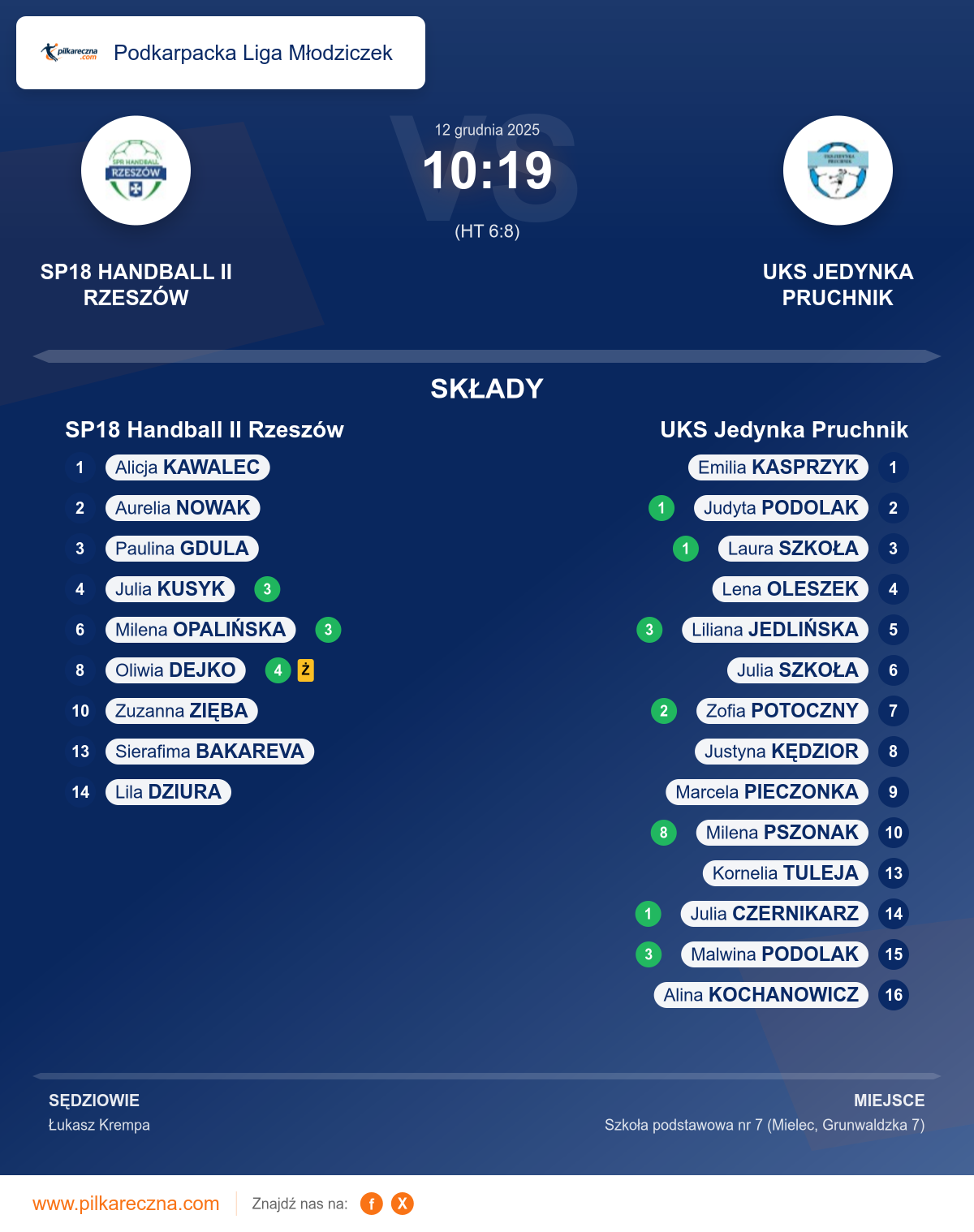 SP18 Handball II Rzeszów 10–19 UKS Jedynka Pruchnik