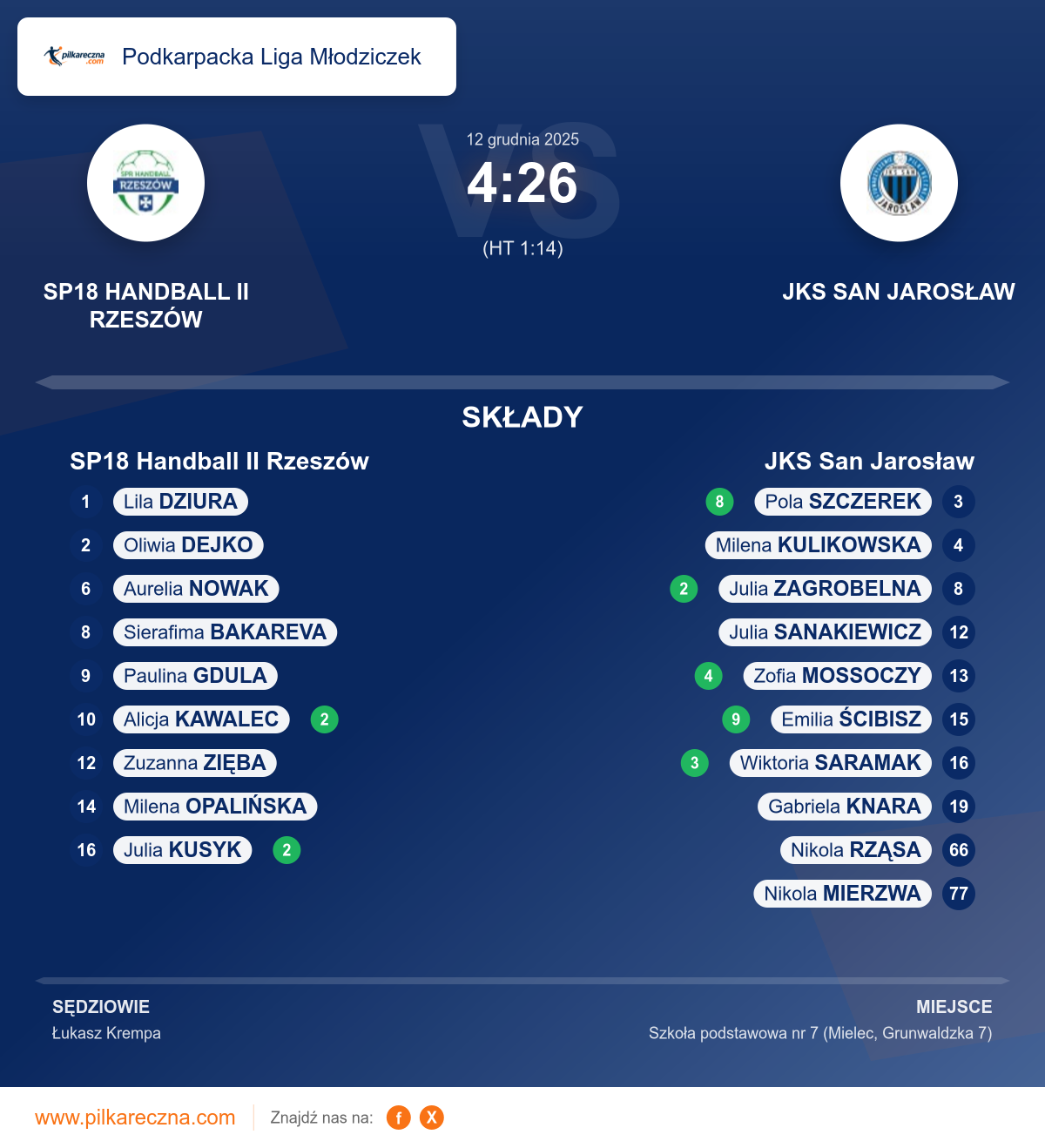 SP18 Handball II Rzeszów 4–26 JKS San Jarosław