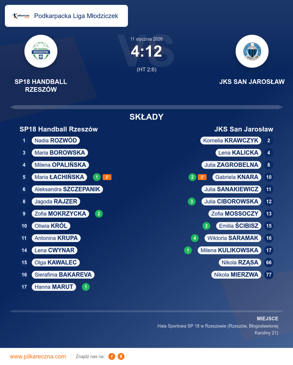 SP18 Handball Rzeszów 4–12 JKS San Jarosław