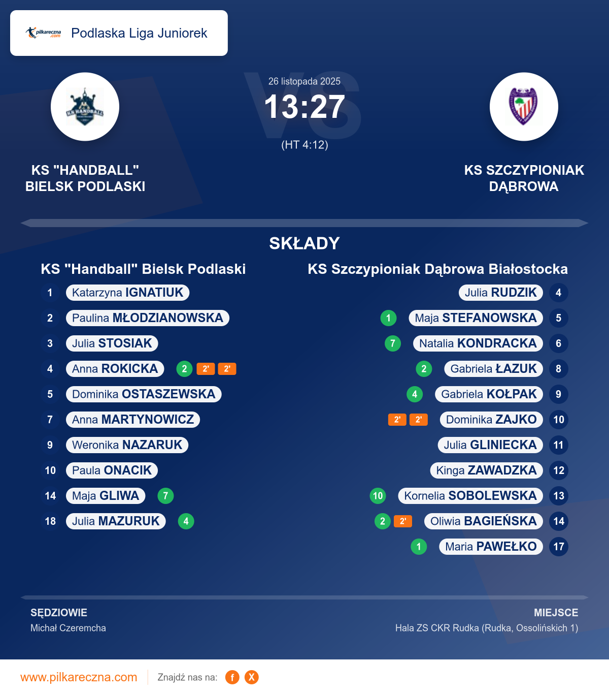 KS "Handball" Bielsk Podlaski 13–27 KS Szczypioniak Dąbrowa Białostocka
