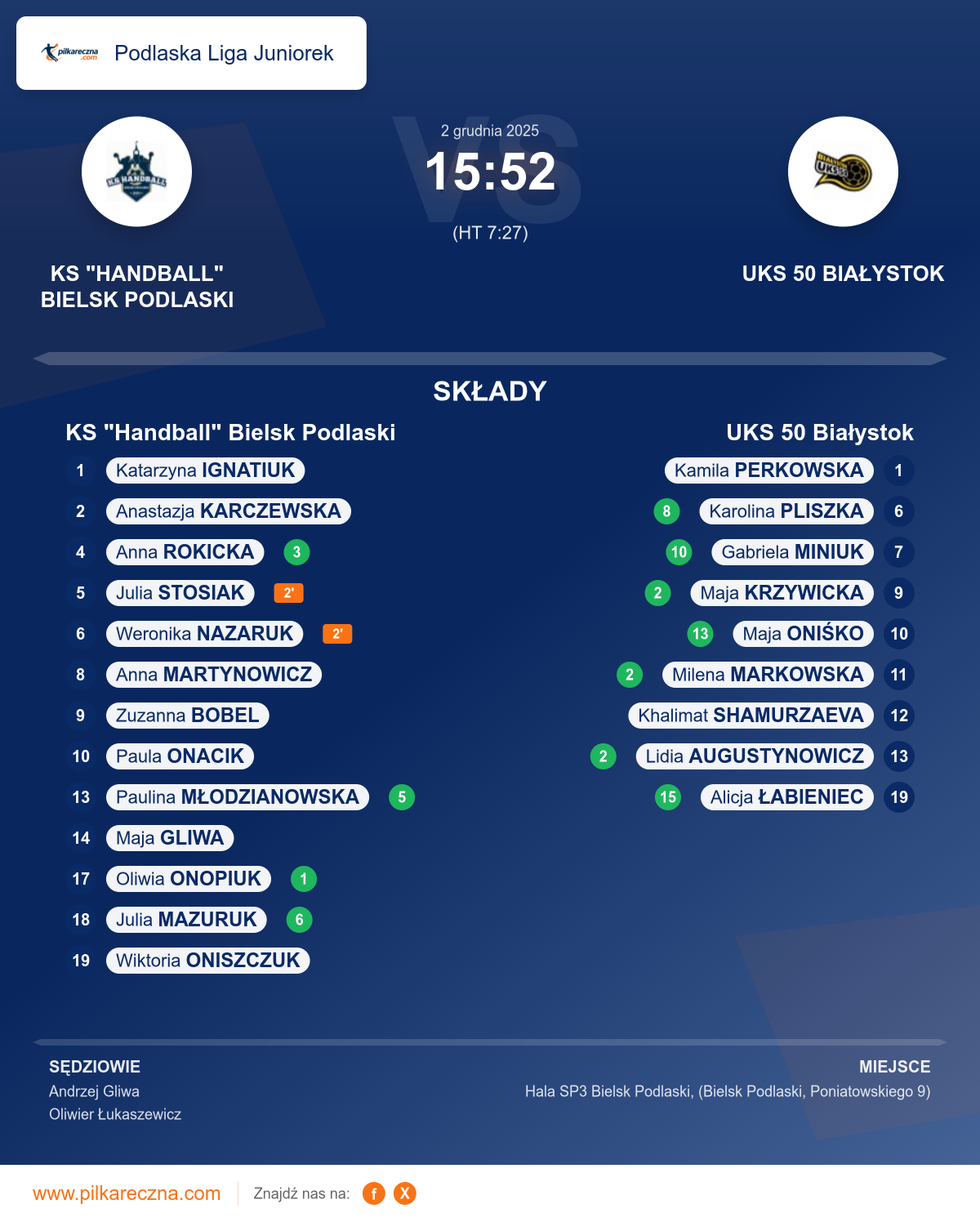 KS "Handball" Bielsk Podlaski 15–52 UKS 50 Białystok