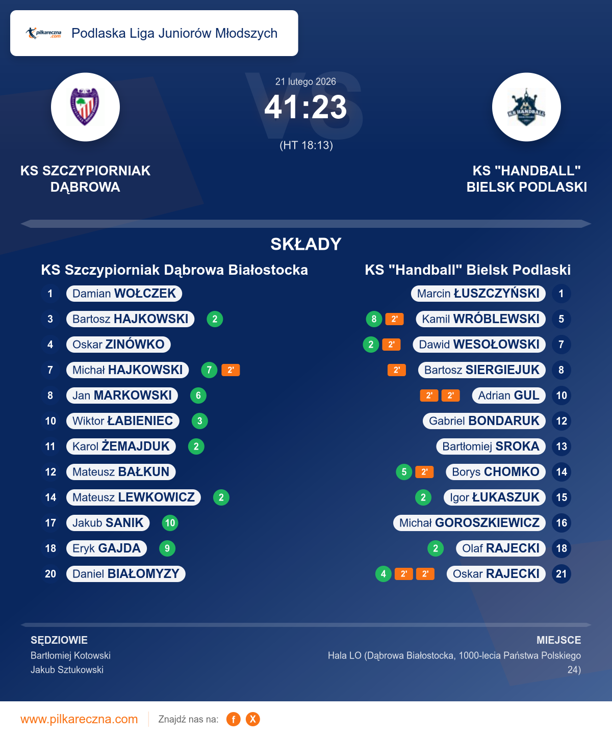 KS Szczypiorniak Dąbrowa Białostocka 41–23 KS "Handball" Bielsk Podlaski