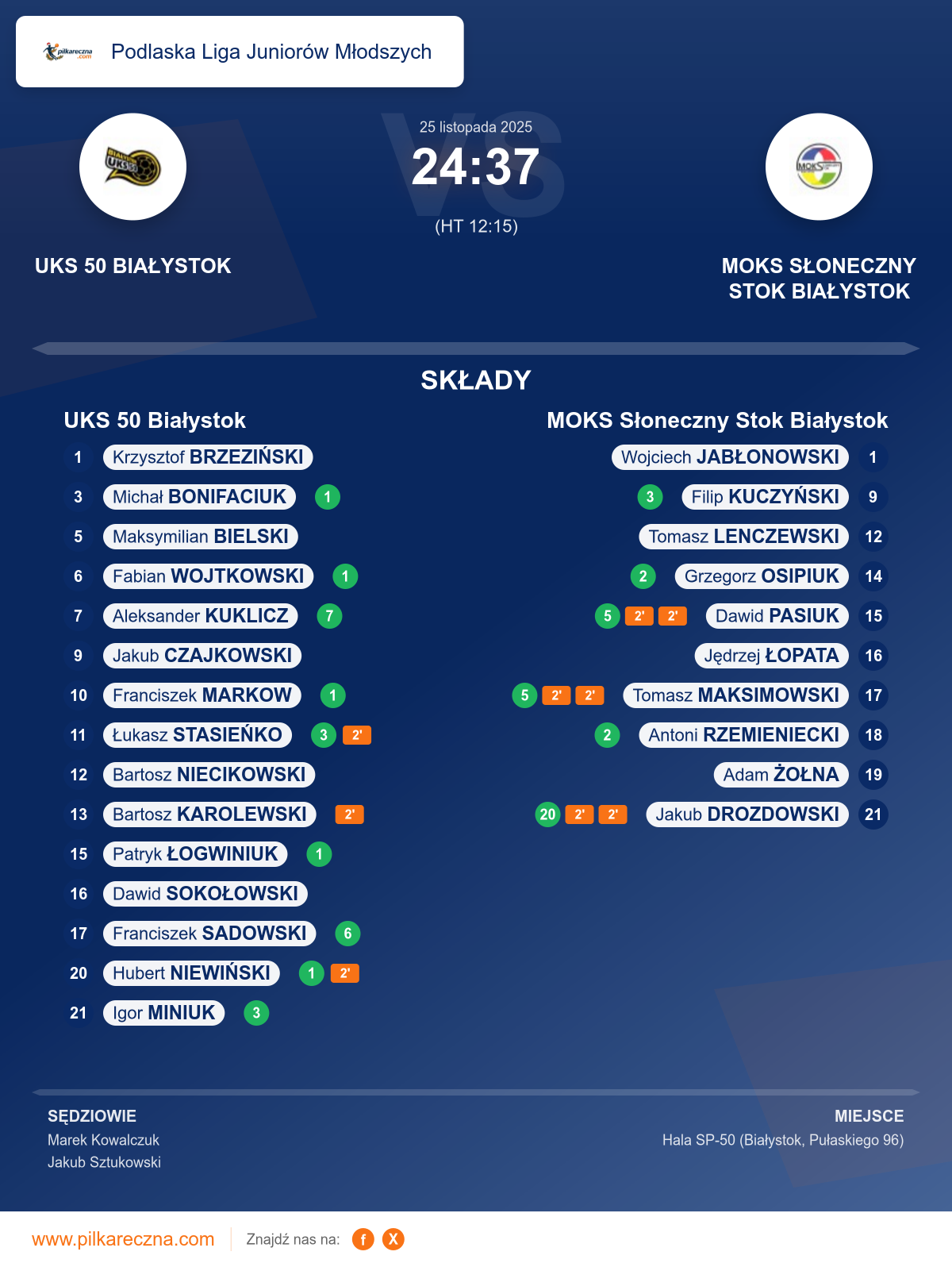Sędziowali: Marek Kowalczuk, Jakub Sztukowski