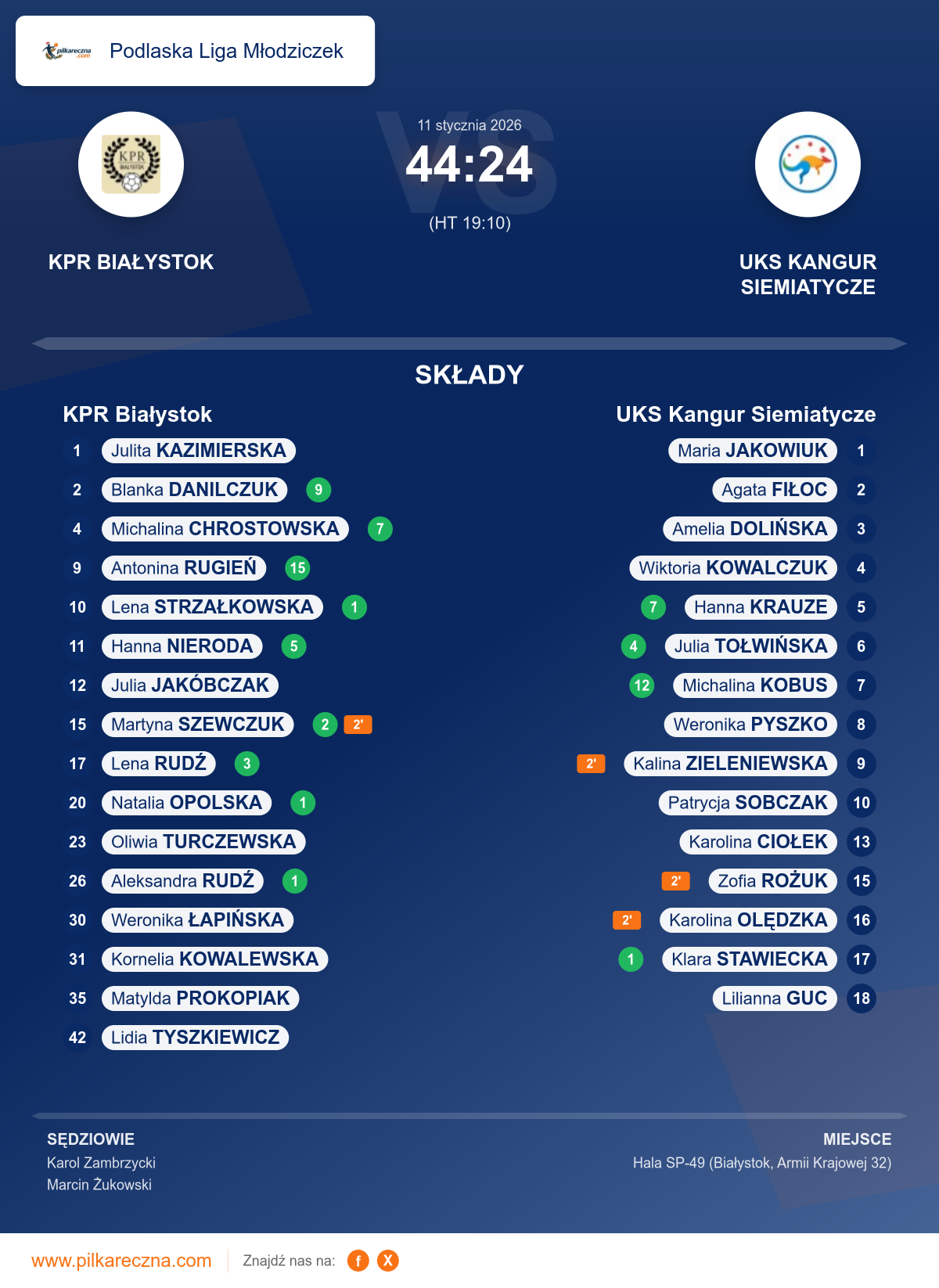 KPR Białystok 44–24 UKS Kangur Siemiatycze