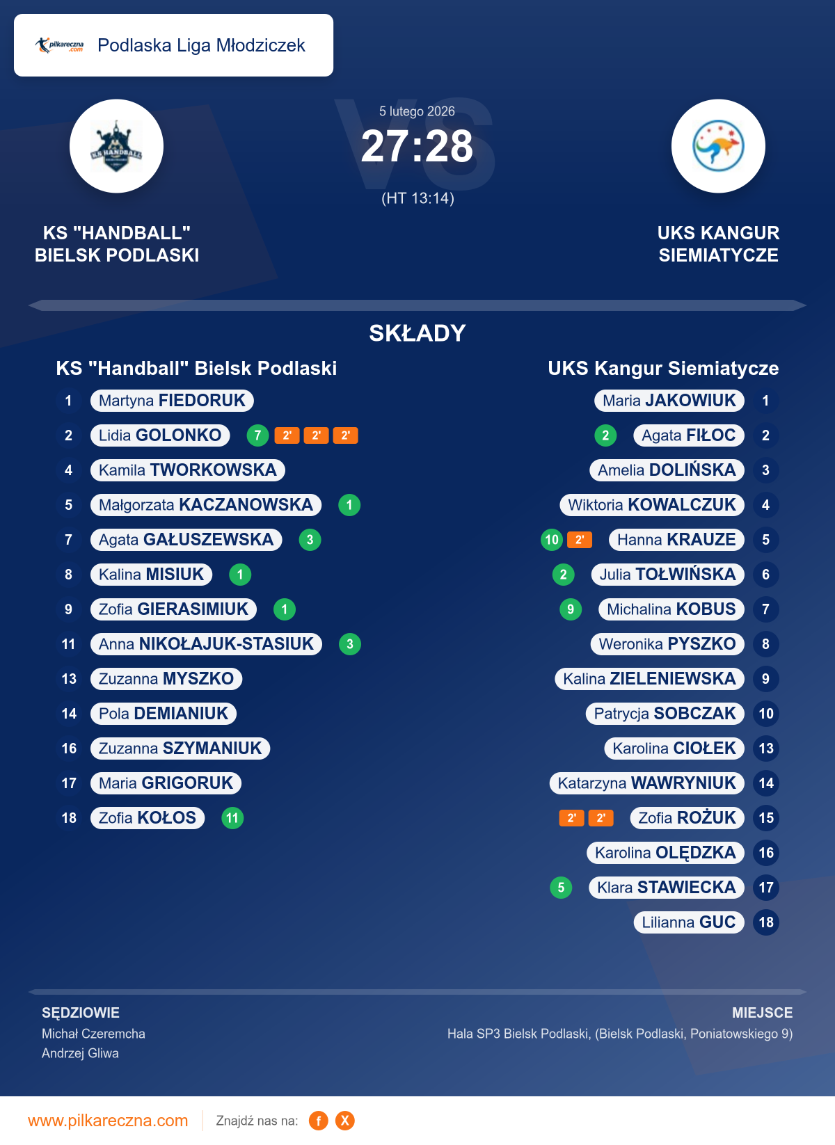 KS "Handball" Bielsk Podlaski 27–28 UKS Kangur Siemiatycze