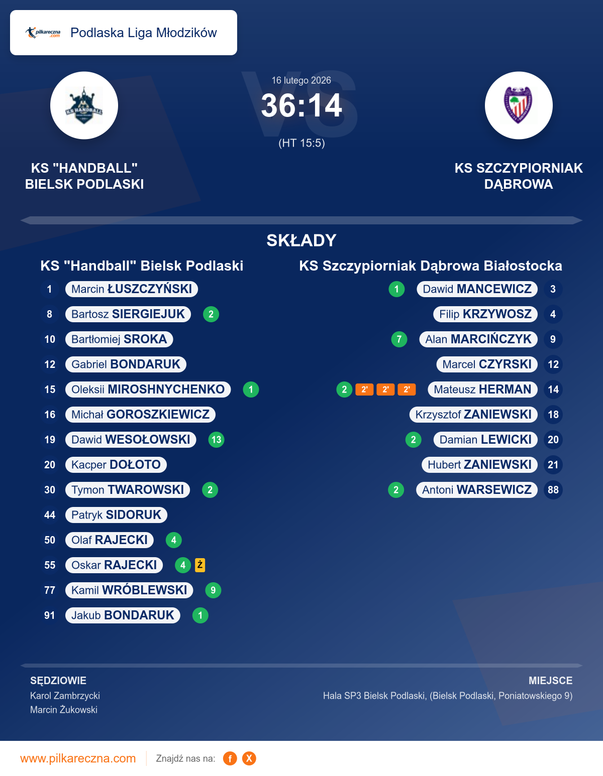 KS "Handball" Bielsk Podlaski 36–14 KS Szczypiorniak Dąbrowa Białostocka