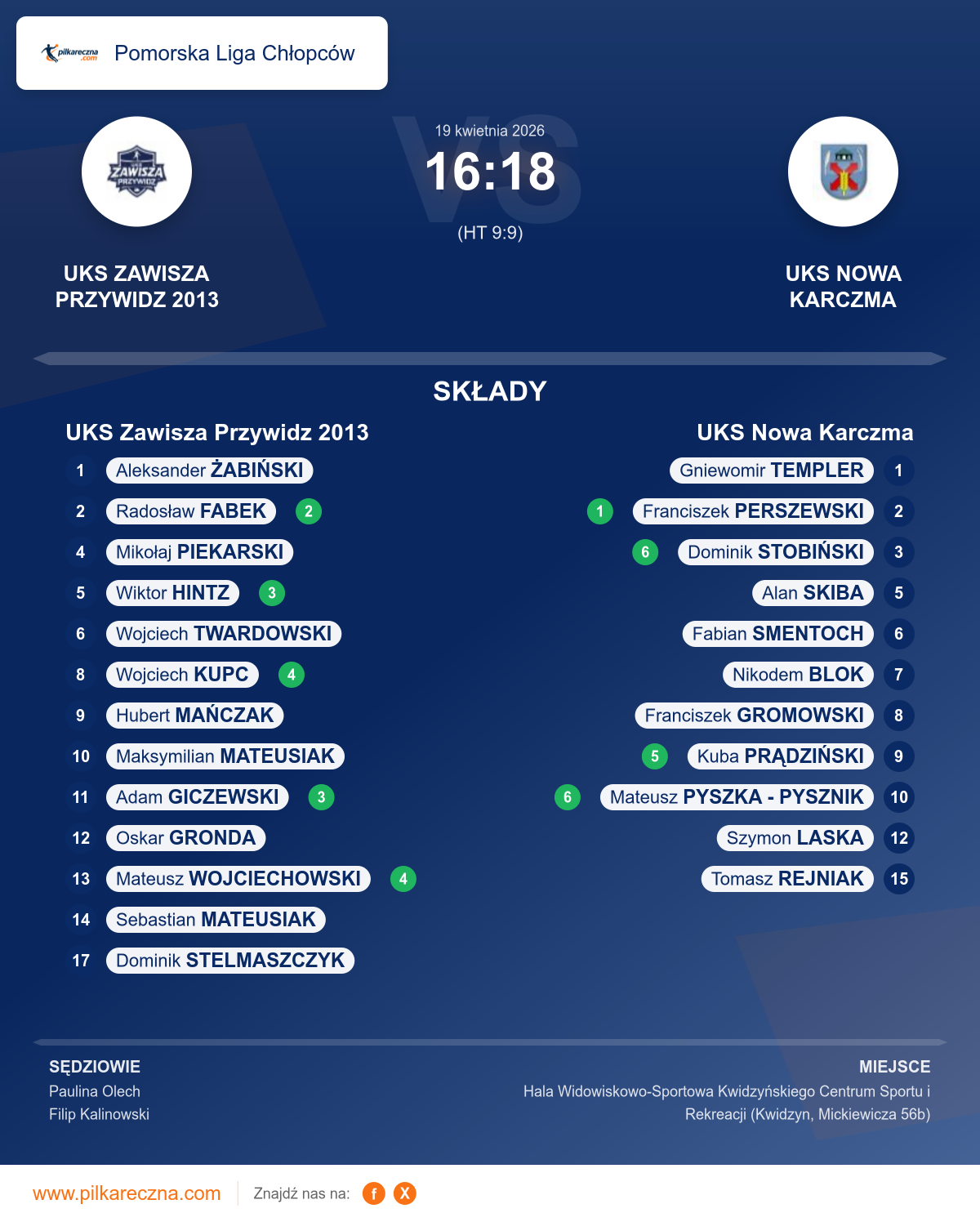 UKS Zawisza Przywidz 2013 16–18 UKS Nowa Karczma