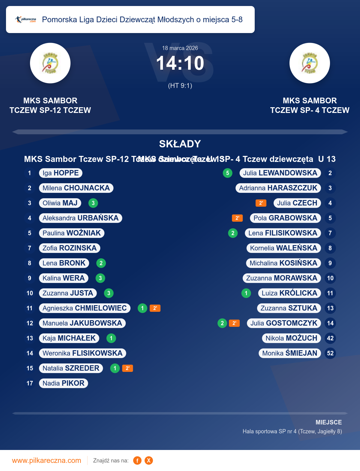 MKS Sambor Tczew SP-12 Tczew dziewczęta U 13 14–10 MKS Sambor Tczew SP- 4 Tczew dziewczęta U 13