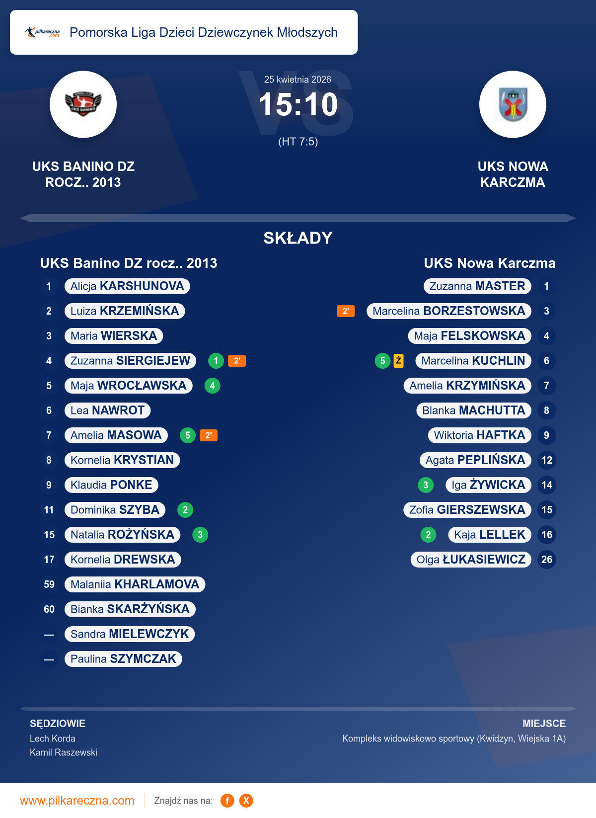 Zawodnicy: Marcelina Kuchlin (5), Iga Żywicka (3), Kaja Lellek (2), Amelia Krzymińska, Blanka Machutta, Maja Felskowska, Marcelina Borzestowska, Olga Łukasiewicz, Wiktoria Haftka, Zofia Gierszewska