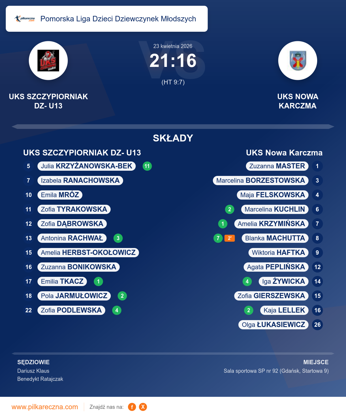UKS SZCZYPIORNIAK DZ- U13 21–16 UKS Nowa Karczma