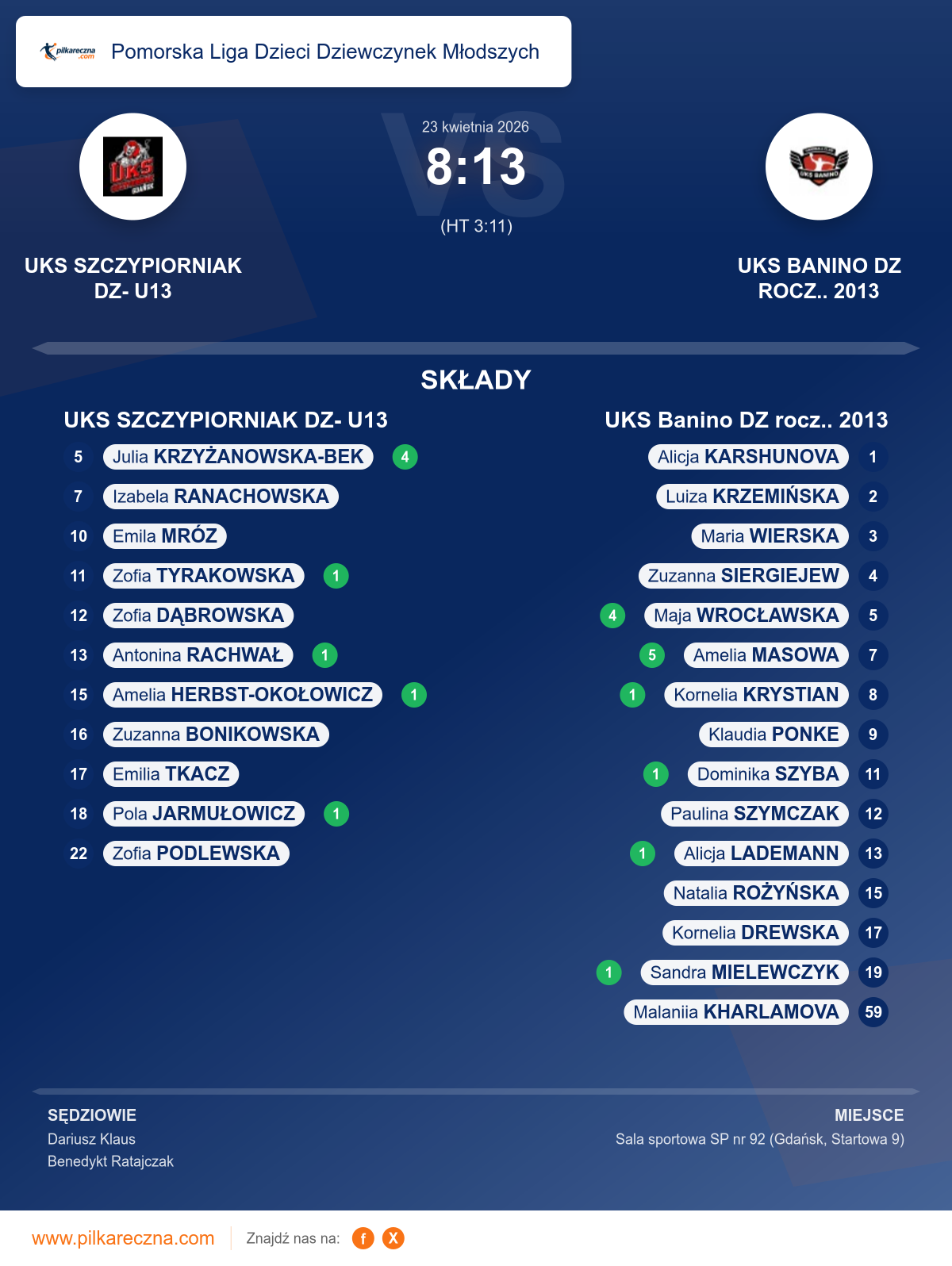 UKS SZCZYPIORNIAK DZ- U13 8–13 UKS Banino DZ rocz.. 2013