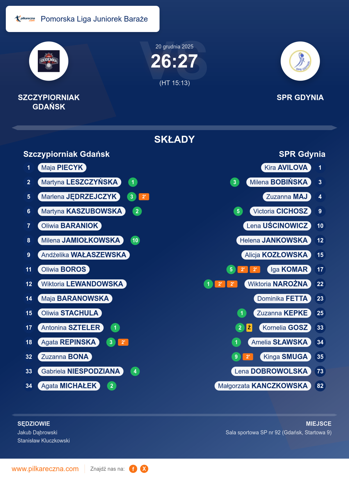 Szczypiorniak Gdańsk 26–27 SPR Gdynia