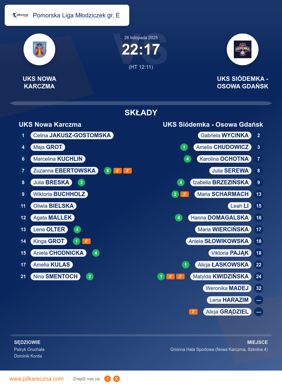 UKS Nowa Karczma 22–17 UKS Siódemka - Osowa Gdańsk