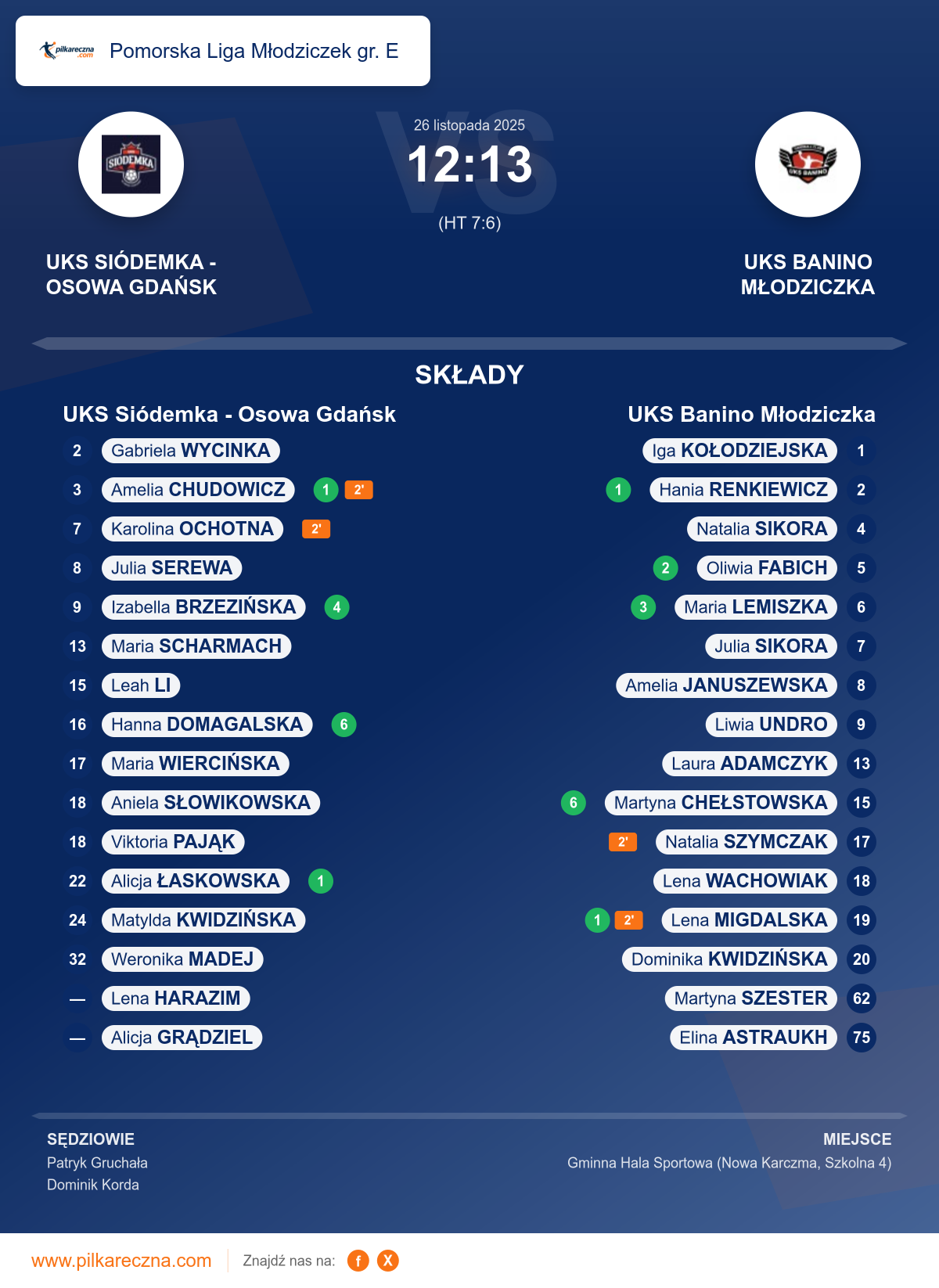 UKS Siódemka - Osowa Gdańsk 12–13 UKS Banino Młodziczka