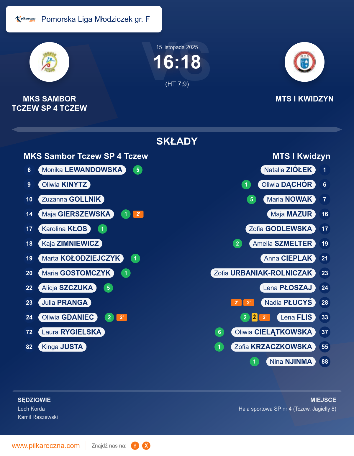 MKS Sambor Tczew SP 4 Tczew 16–18 MTS I Kwidzyn
