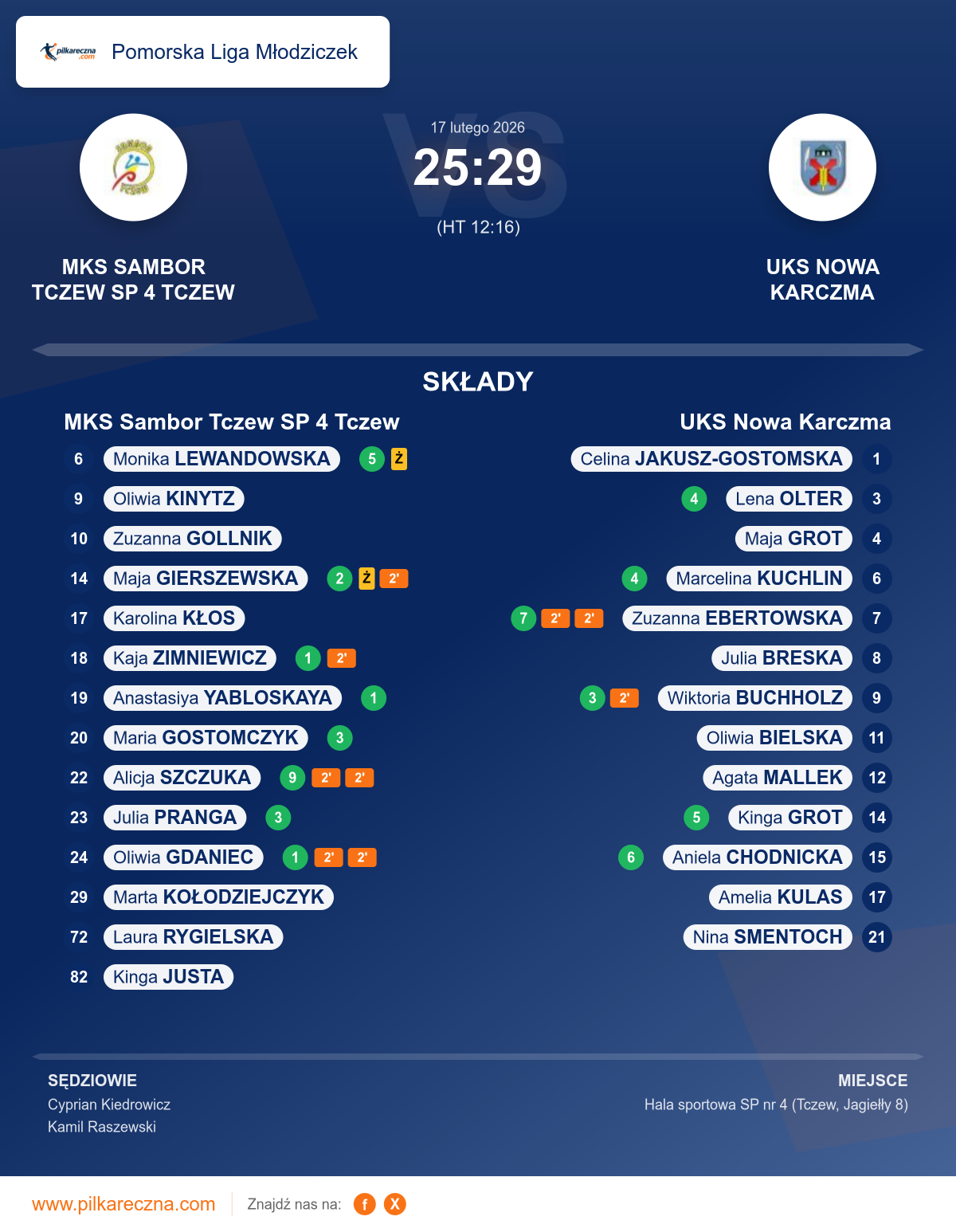 Zawodnicy: Zuzanna Ebertowska (7), Aniela Chodnicka (6), Kinga Grot (5), Lena Olter (4), Marcelina Kuchlin (4), Wiktoria Buchholz (3), Amelia Kulas, Julia Breska, Maja Grot, Nina Smentoch, Oliwia Bielska