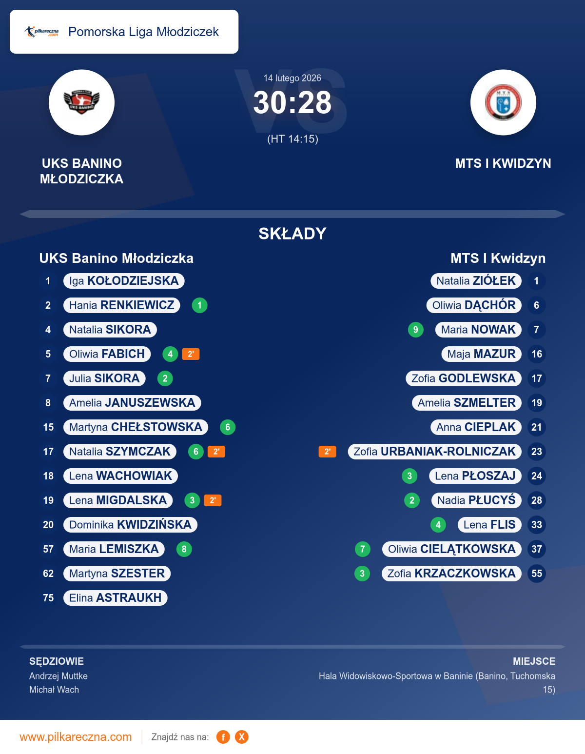 UKS Banino Młodziczka — MTS I Kwidzyn