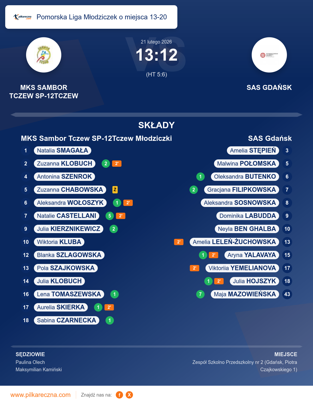 MKS Sambor Tczew SP-12Tczew Młodziczki 13–12 SAS Gdańsk