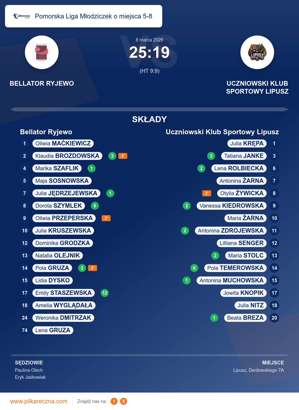 Bellator Ryjewo 25–19 Uczniowski Klub Sportowy Lipusz