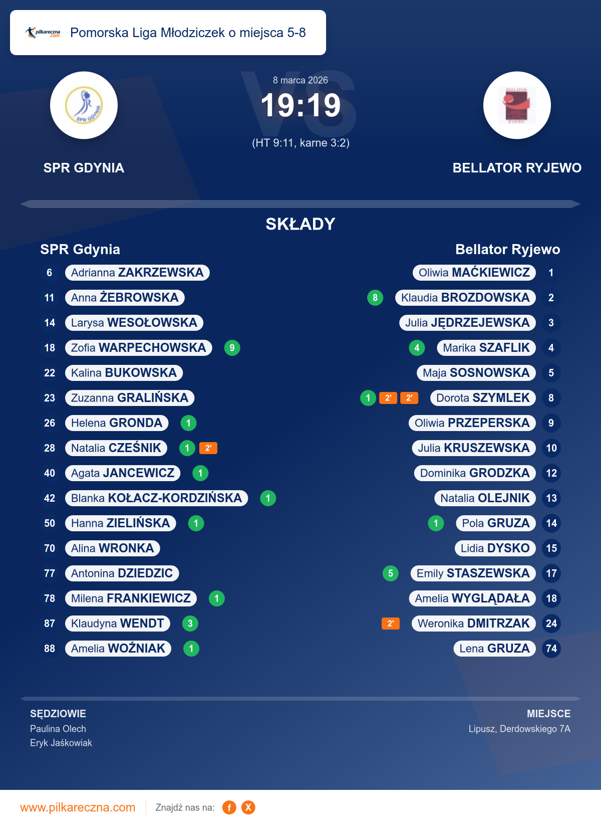 Zawodnicy: Klaudia Brozdowska (8), Emily Staszewska (5), Marika Szaflik (4), Dorota Szymlek (1), Pola Gruza (1), Amelia Wyglądała, Julia Jędrzejewska, Julia Kruszewska, Lena Gruza, Lidia Dysko, Maja Sosnowska, Natalia Olejnik, Oliwia Maćkiewicz, Oliwia Przeperska, Weronika Dmitrzak