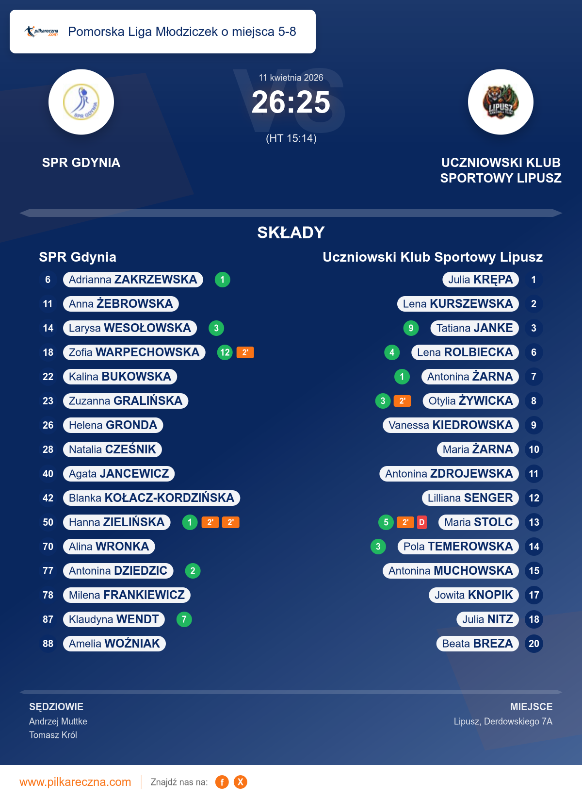 Wynik: 26–25 (HT 15–14)