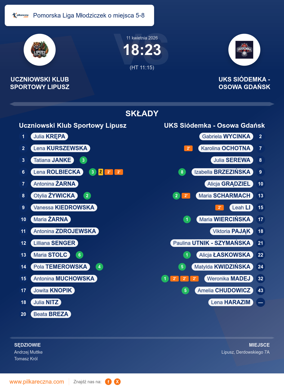 Uczniowski Klub Sportowy Lipusz 18–23 UKS Siódemka - Osowa Gdańsk