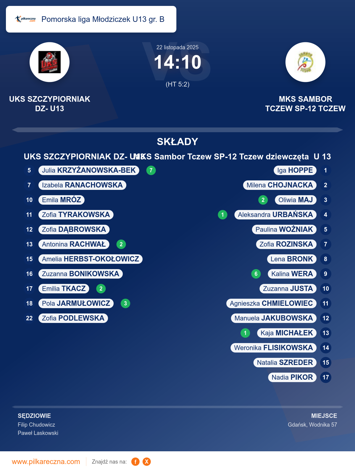 UKS SZCZYPIORNIAK DZ- U13 — MKS Sambor Tczew SP-12 Tczew dziewczęta U 13