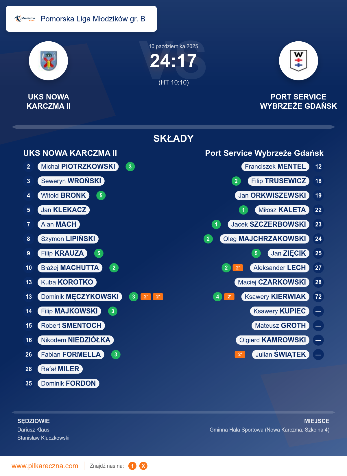 UKS NOWA KARCZMA II 24–17 Port Service Wybrzeże Gdańsk