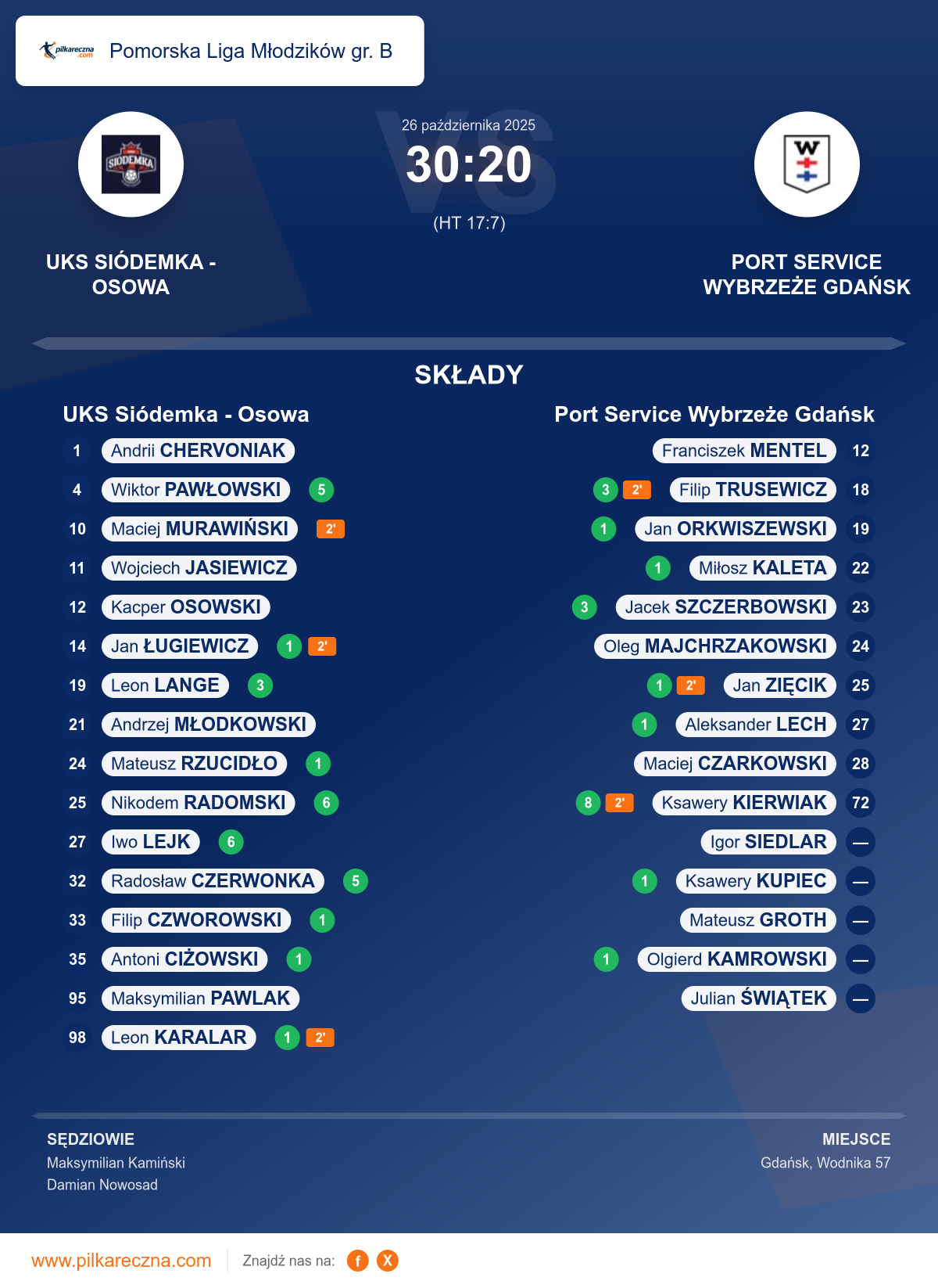 UKS Siódemka - Osowa 30–20 Port Service Wybrzeże Gdańsk