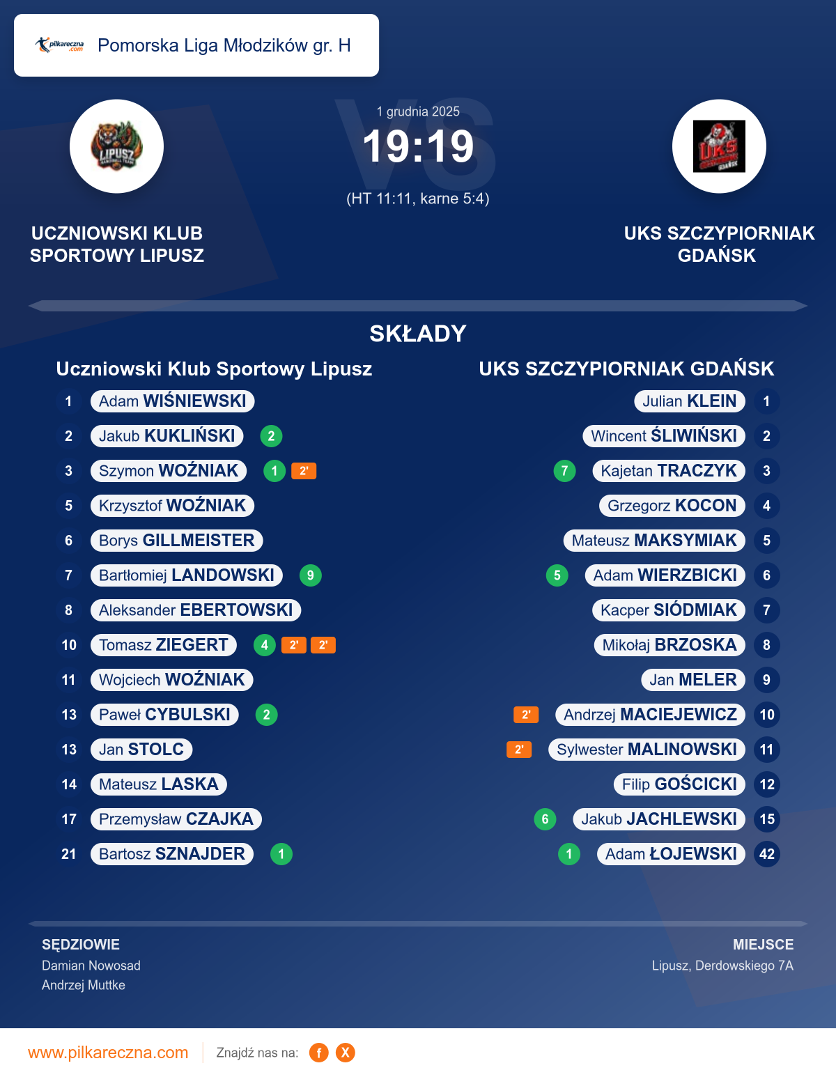 Sędziowali: Damian Nowosad, Andrzej Muttke
