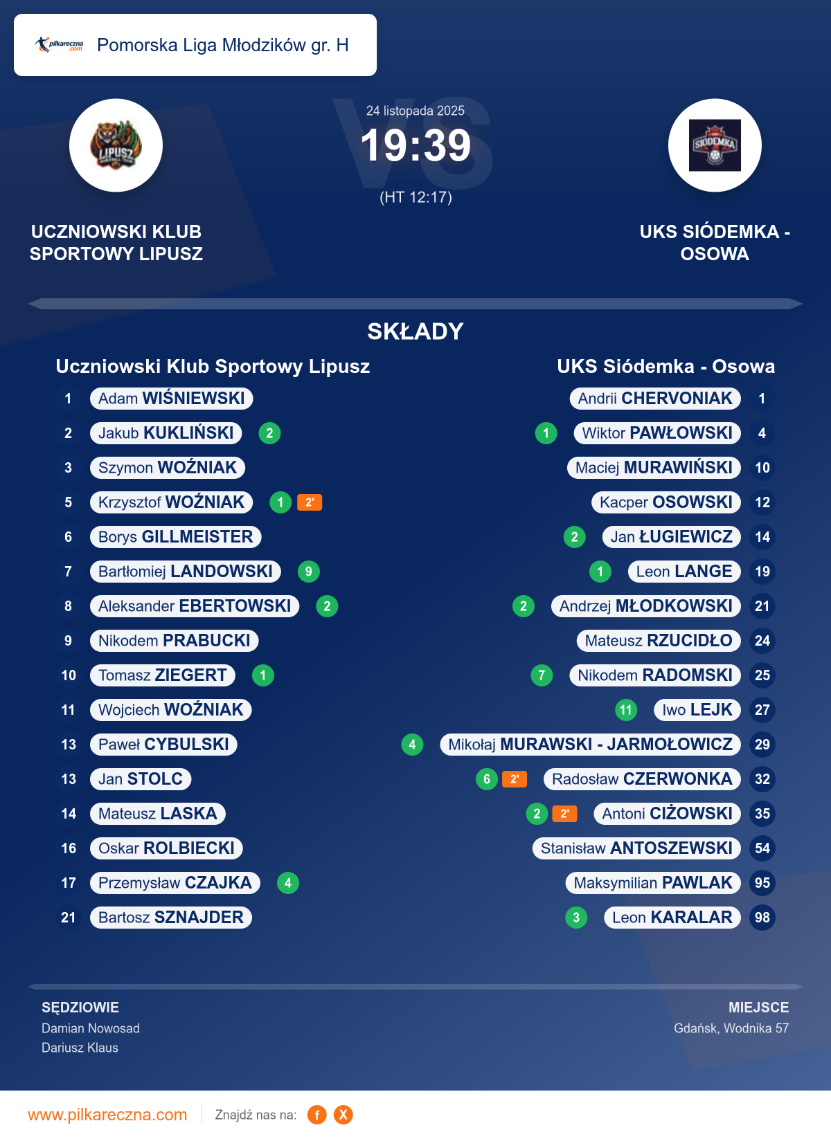 Uczniowski Klub Sportowy Lipusz 19–39 UKS Siódemka - Osowa