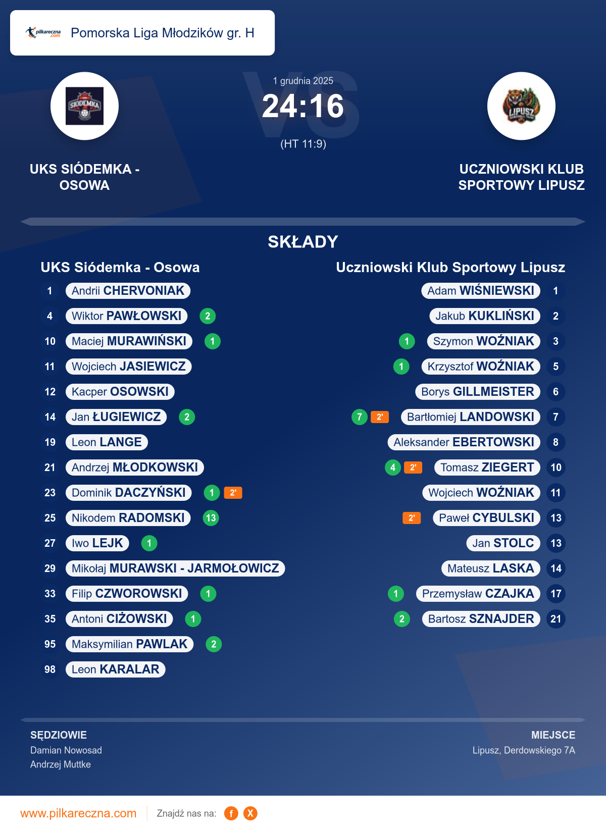 UKS Siódemka - Osowa 24–16 Uczniowski Klub Sportowy Lipusz
