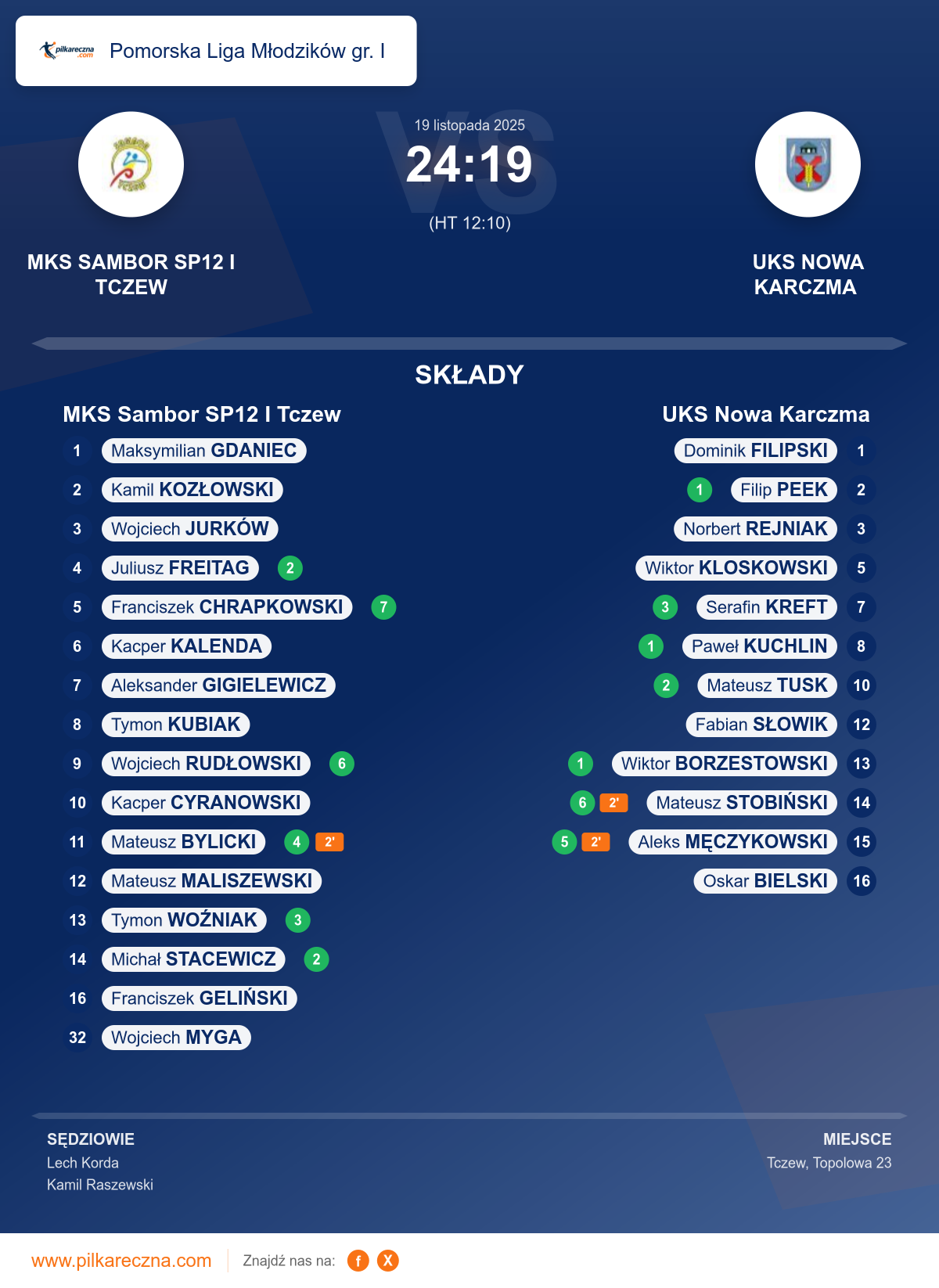 MKS Sambor SP12 I Tczew 24–19 UKS Nowa Karczma