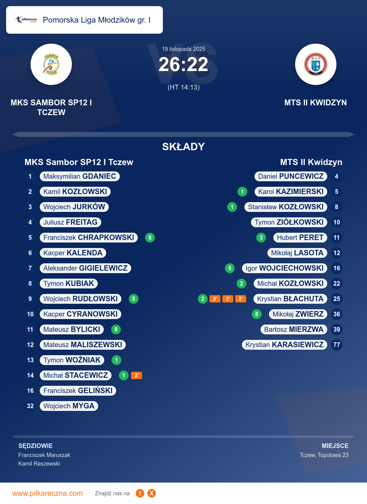 Sędziowali: Franciszek Maruszak, Kamil Raszewski