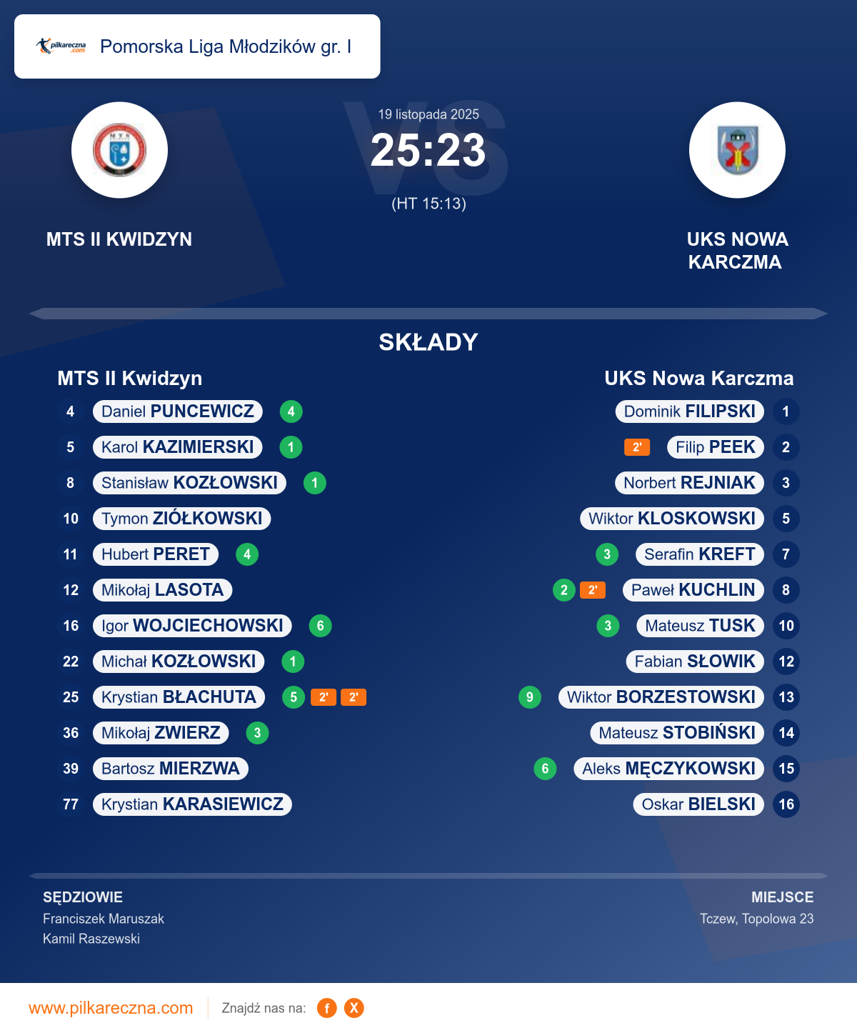 MTS II Kwidzyn 25–23 UKS Nowa Karczma