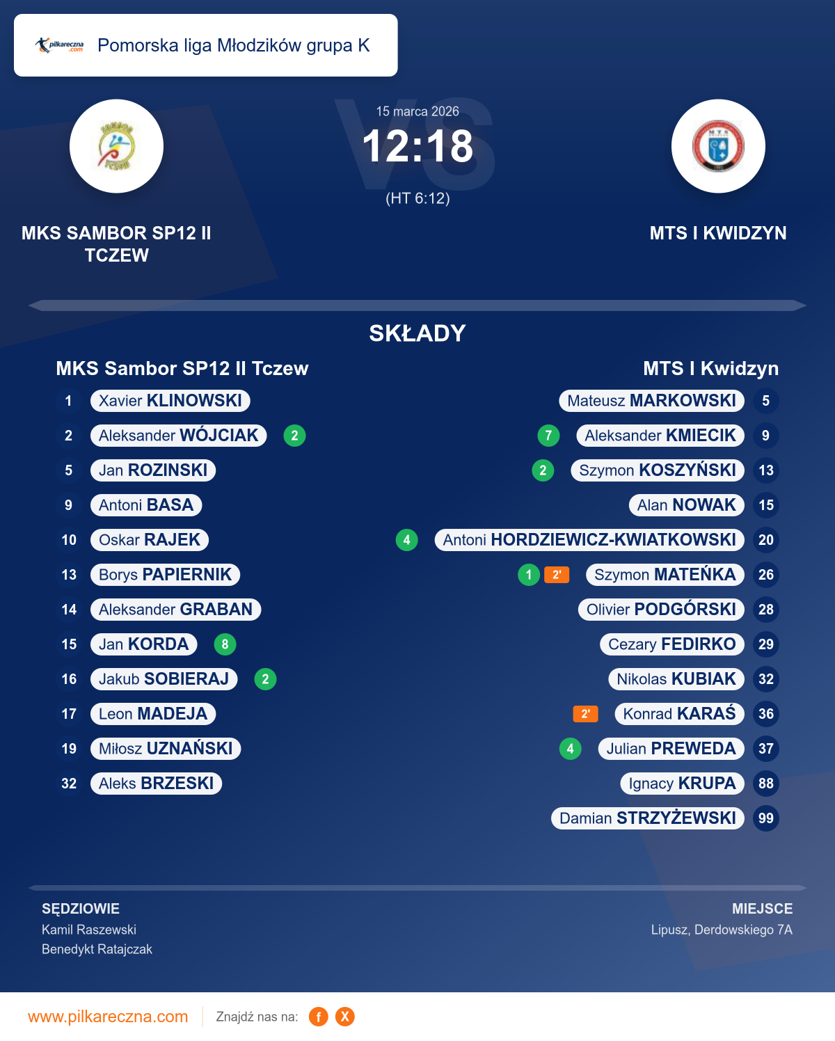 Sędziowali: Kamil Raszewski, Benedykt Ratajczak